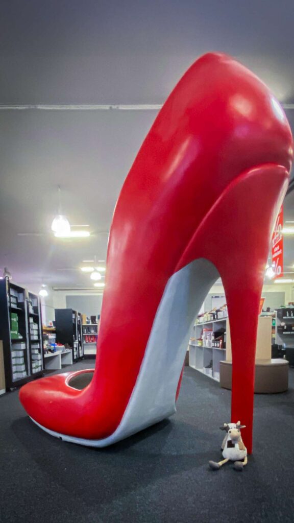 Auch Unternehmen sind herzlich eingeladen, Teil dieser außergewöhnlichen Aktion zu werden. Der XXL-Pumps ist nicht nur ein einmaliges Kunstwerk, sondern ein perfektes Symbol für jede Schuhabteilung, für Schuhgeschäfte, Schuhhersteller, Modeläden oder Modehäuser. Vor der Filiale aufgestellt – er ist allwettertauglich – zieht er garantiert die Blicke von Passanten auf sich. Kunden werden neugierig, bleiben stehen, machen Fotos und teilen diese Momente in sozialen Netzwerken. Damit erzeugt der XXL-Pumps sofort einen immensen PR-Effekt, der Aufmerksamkeit auf Dein Geschäft lenkt und gleichzeitig die gute Sache unterstützt.